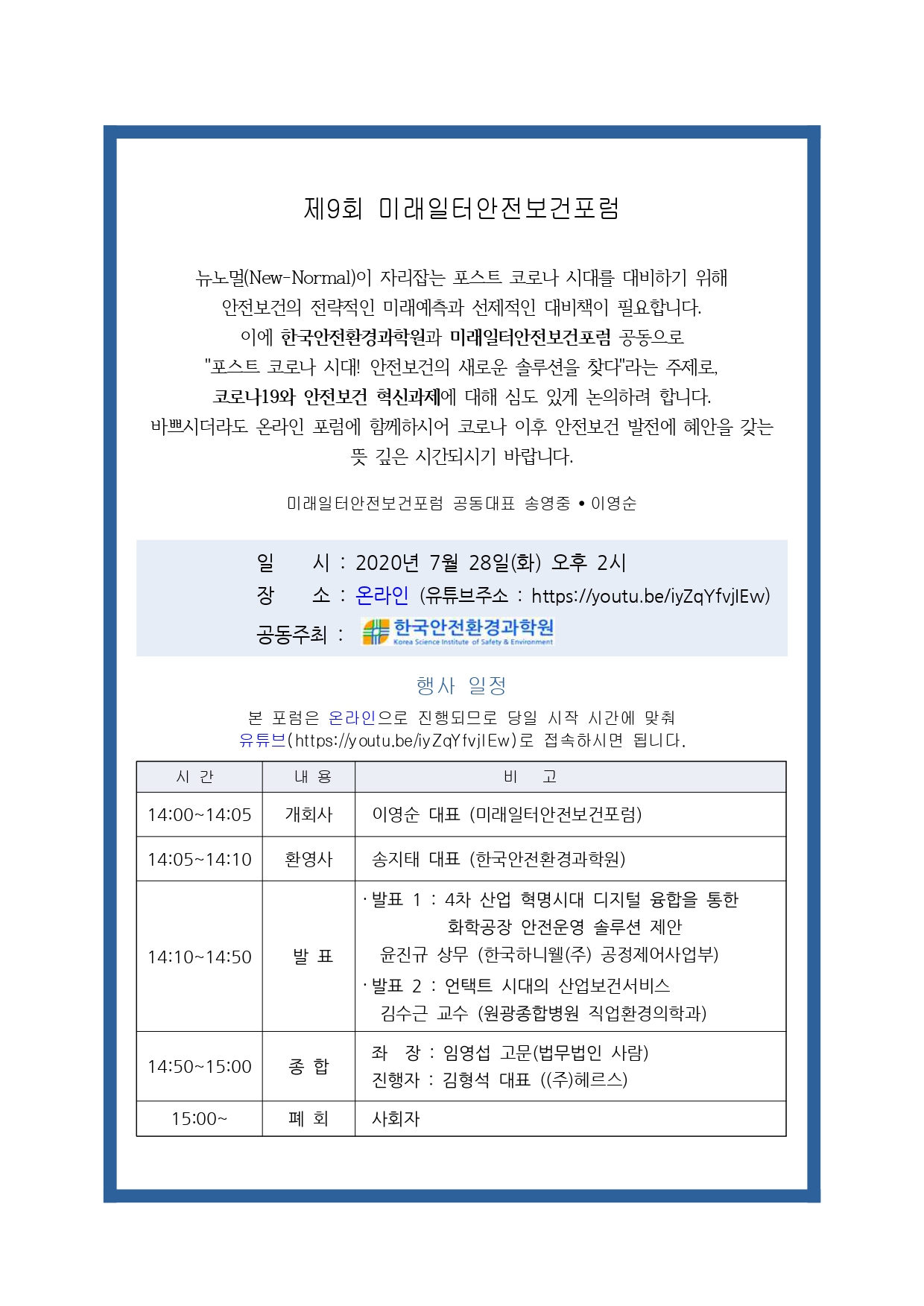 10회 : Post COVID-19 안전보건 페러다임의 거대한 전환