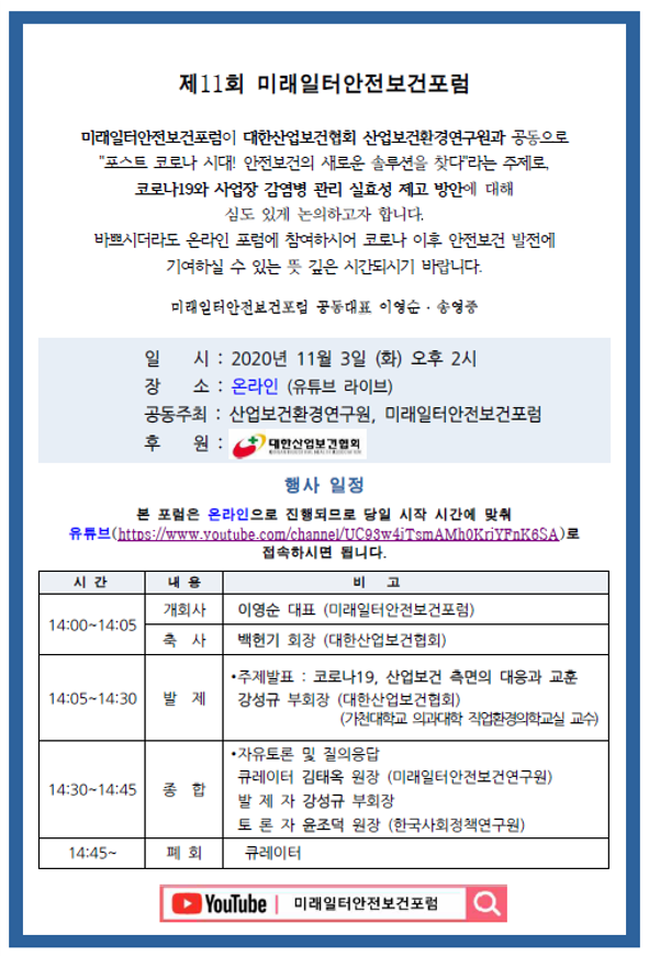 11회 : 코로나19 산업보건 측면의 대응과 교훈