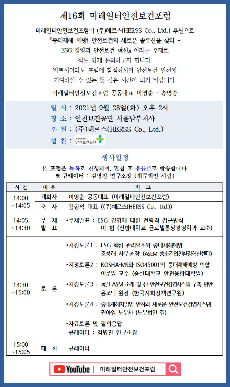 14회 : 화학공장 안전을 위한 스마트안전기술 / 중대재해예방을 위한 Bow tie & RCA